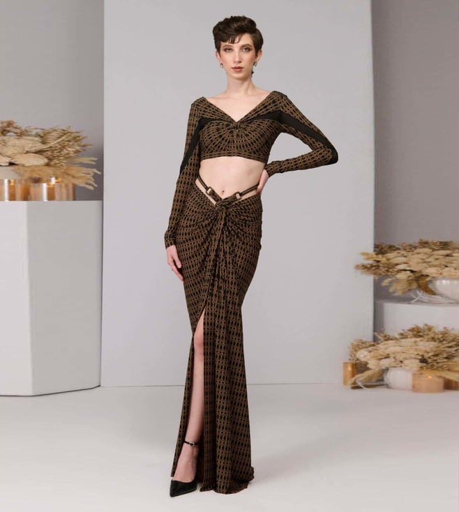 Beige Houndstooth Printed Mid Rise Regular Fit Skirt