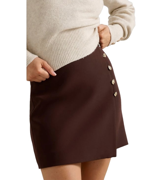 Beige Printed Regular Fit A-Line Pleated Skirt