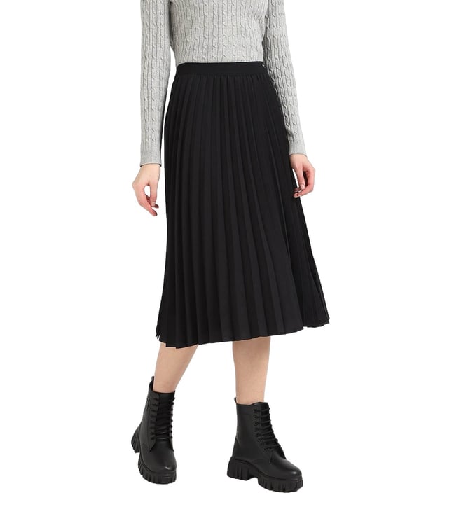 Ivory Pleated Mid Rise Straight Fit Long Skirt