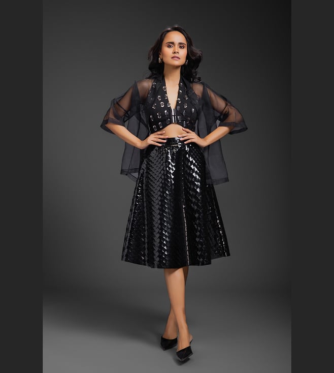 Jet Black A996 WoSolid Regular Fit High-Rise Flared Skirt