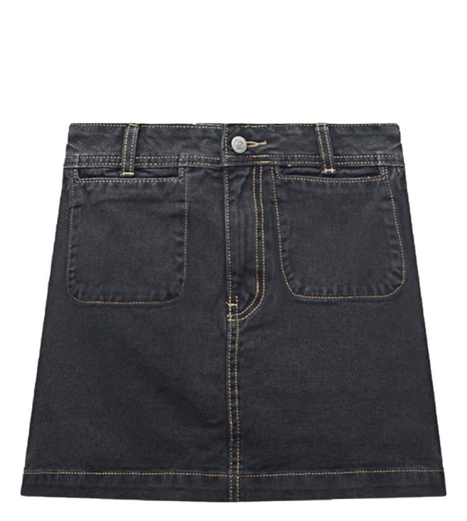 Black Mid Rise Straight Fit Denim Mini Skirt