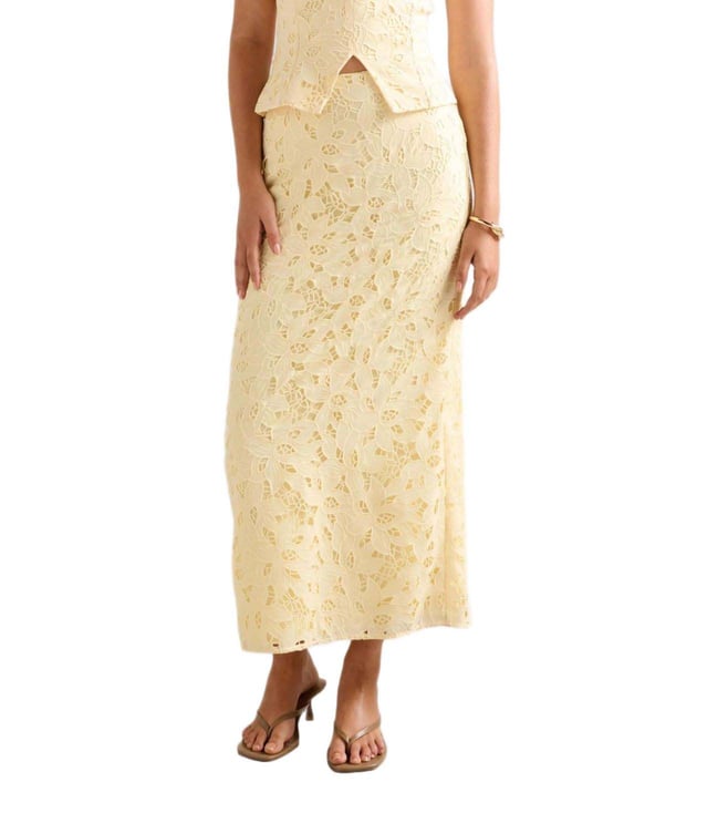 Beige Printed Regular Fit A-Line Pleated Skirt