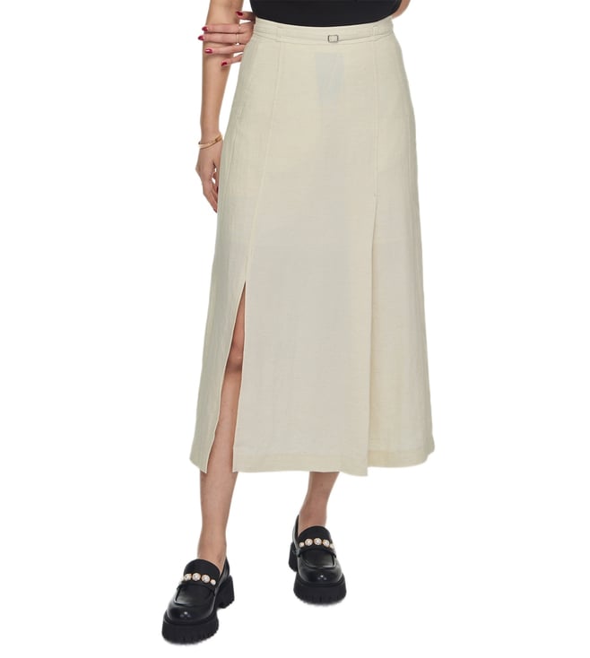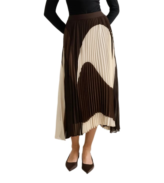 Beige Printed Regular Fit A-Line Pleated Skirt