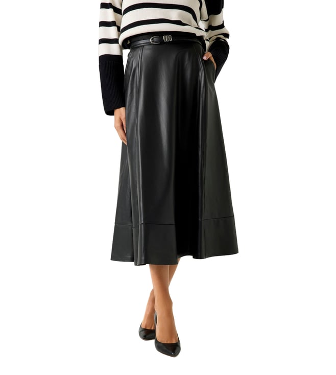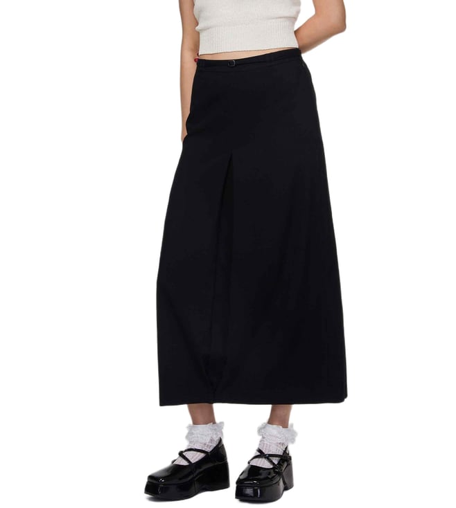 Jet Black A996 WoSolid Regular Fit High-Rise Flared Skirt
