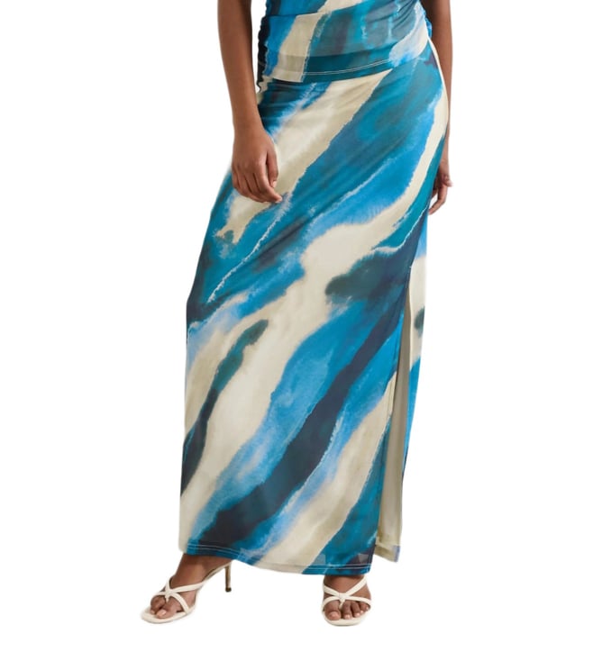 Suiting Blue Multicolor Ribbed Knit Aomori Yarn Regular Fit Skirt