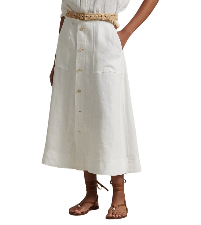 White Buttoned Linen A-Line Skirt