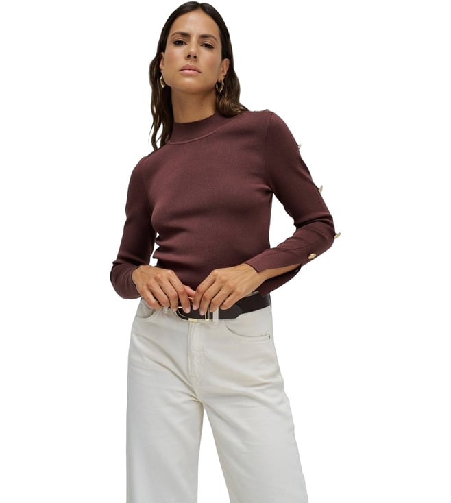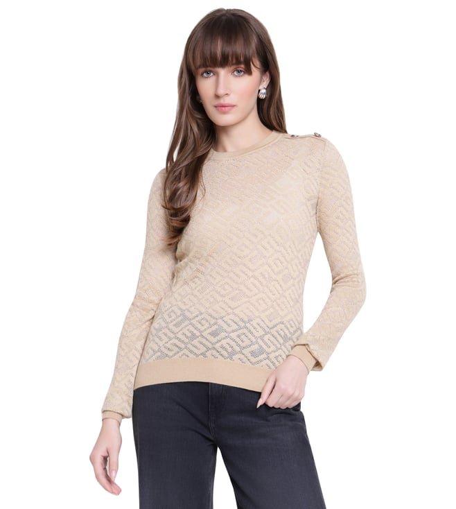 Foamy Taupe Multi Woven Design Regular Sweaters