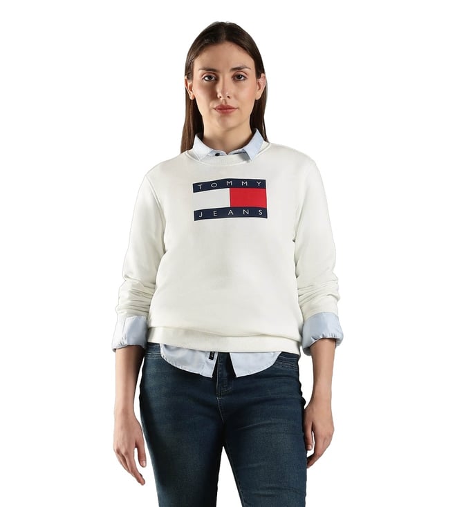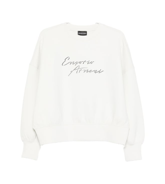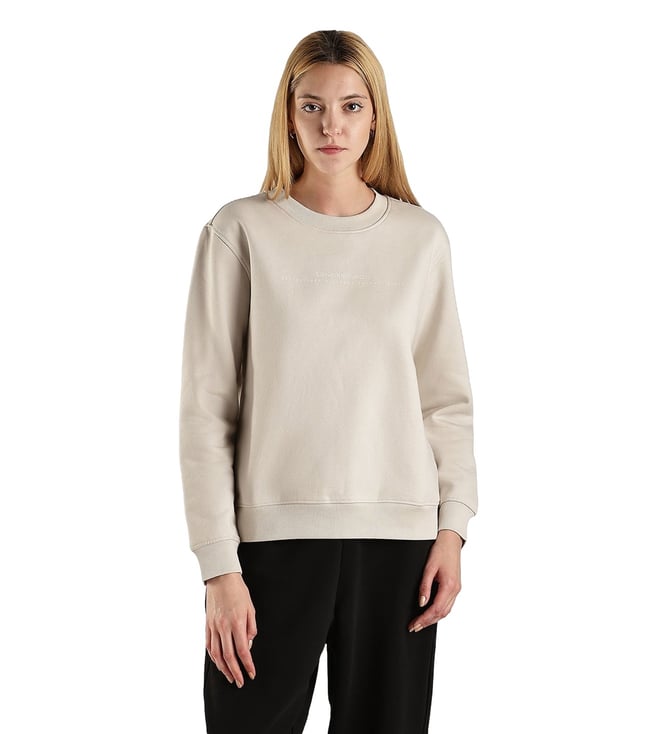 Off White Cotton Regular Fit Logo Printed Sweatshirt