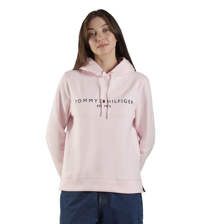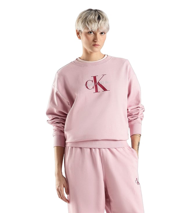 Pink Cotton Regular Fit Logo Printed Sweatshirt
