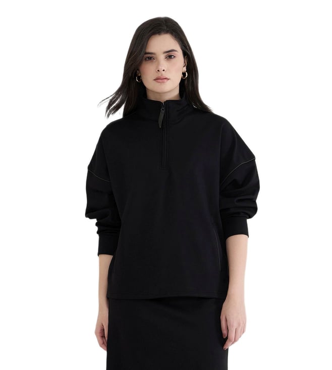 Black Regular Fit Solid Long Sleeves Sweatshirt