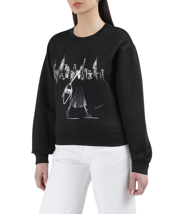 Calvin Klein Black Cotton Logo Printed Long Sleeves Sweatshirt