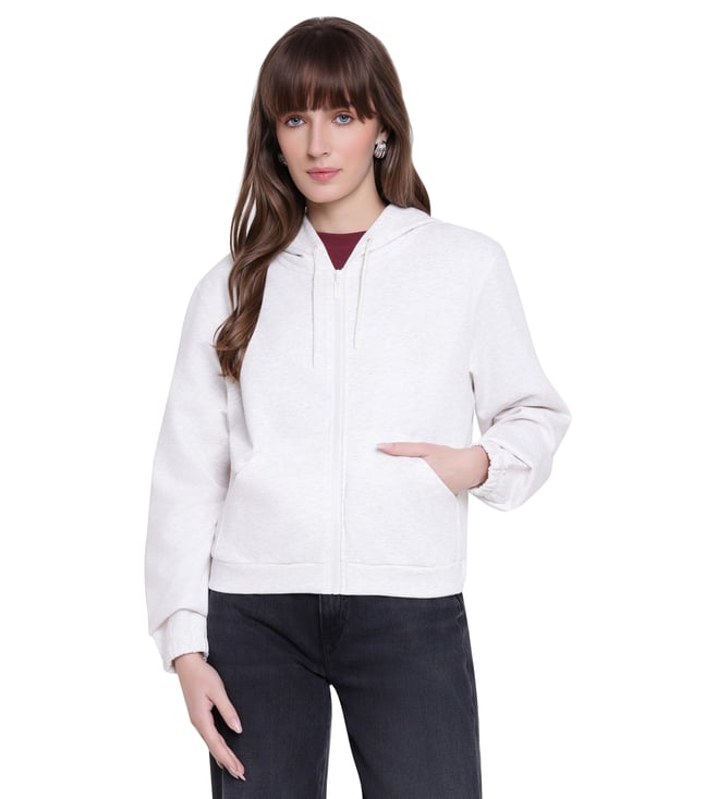 Women Off White Polo Collar Regular Fit Sweatshirt