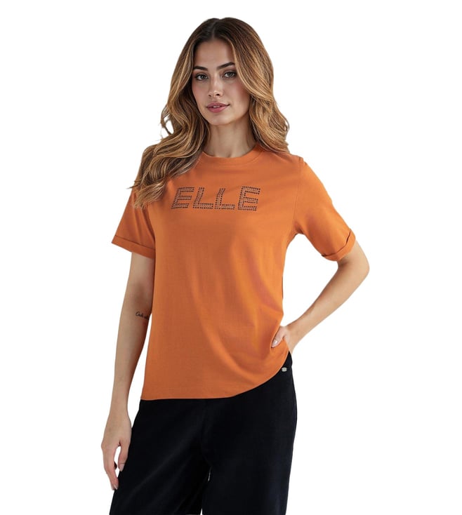 Women Brown Solid Crew Neck Pure Cotton T-Shirt