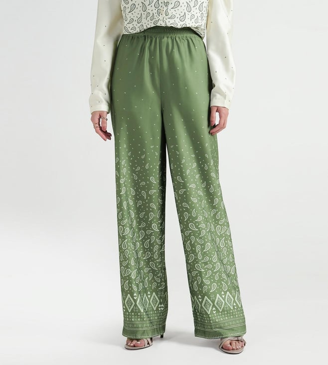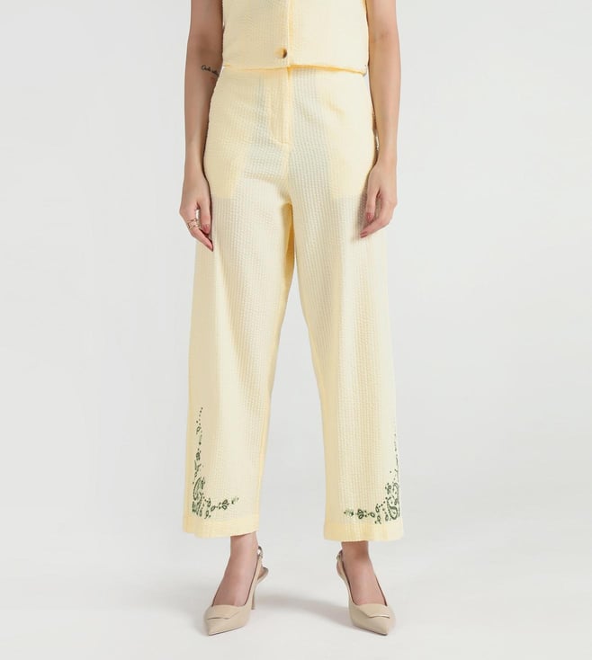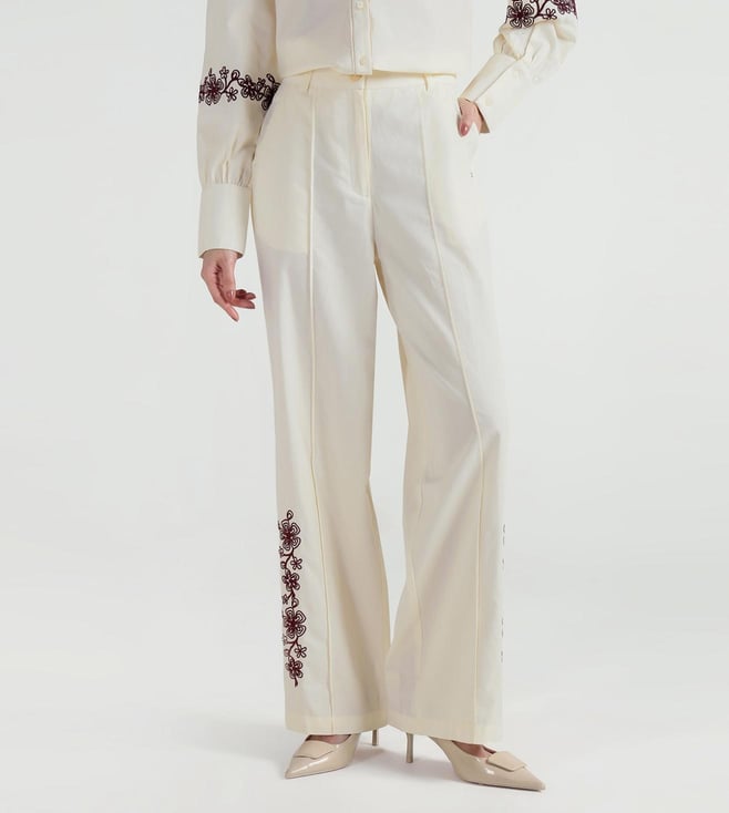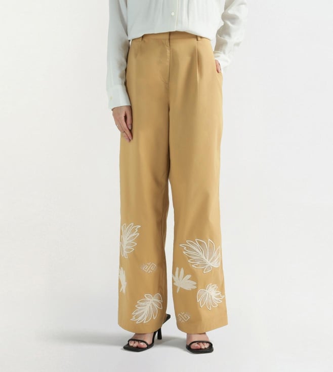 Beige Heart of NY Patchwork Mid rise Wide Leg Fit Pleated Trouser