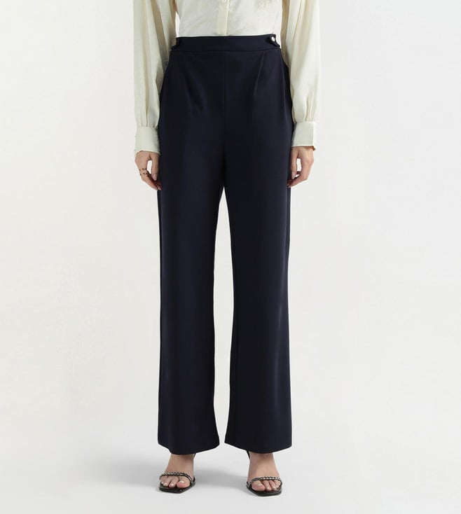 Black Belted Mid Rise Regular Fit Trouser