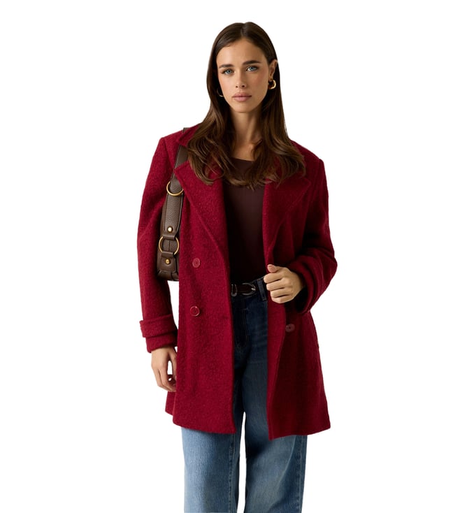 Maroon Cropped Regular Fit Puffer Jacket