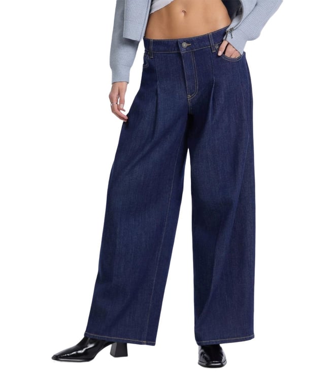 Blue G12 Pleated Extra Wide Leg Mid Relaxed Fit Denim Pant