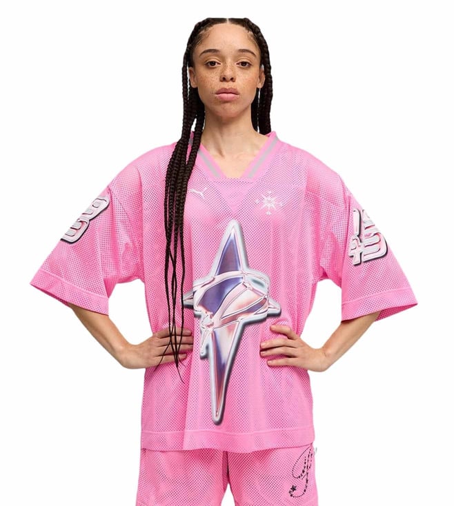 Pink Shooting Stars Relaxed Fit Basketball Jersey T-Shirt