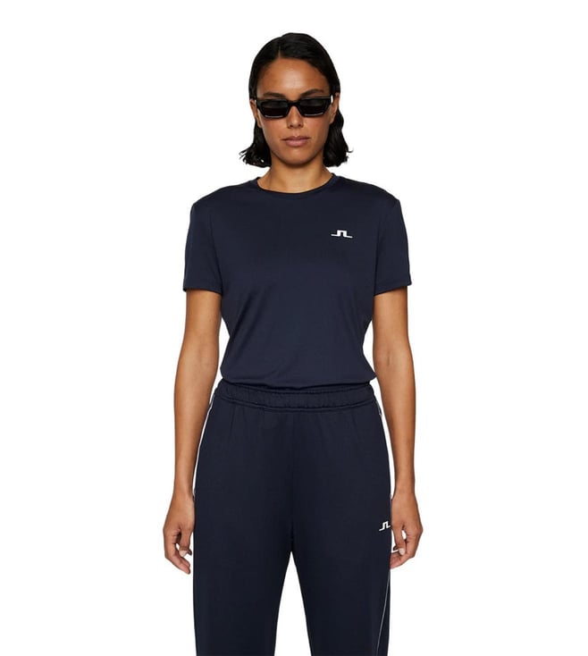 J L Navy Polyester Solid Regular Fit Short Sleeves Kelly Jumpsuit