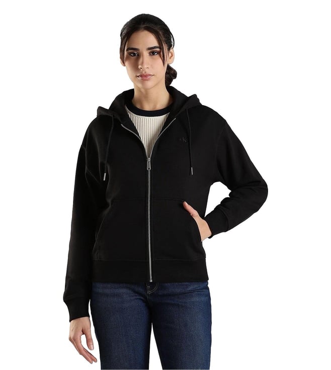 Black Essentials Tape Full Zip Relaxed Fit Hoodie