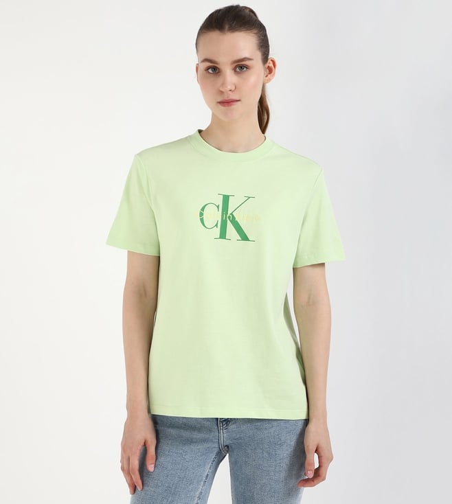 Iconic Hope Green Cotton Slim Fit Logo Printed T-Shirt