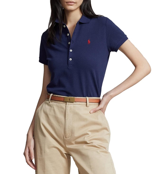 Vessel Blue Multi Striped Relaxed Fit Cotton Polo T-Shirt