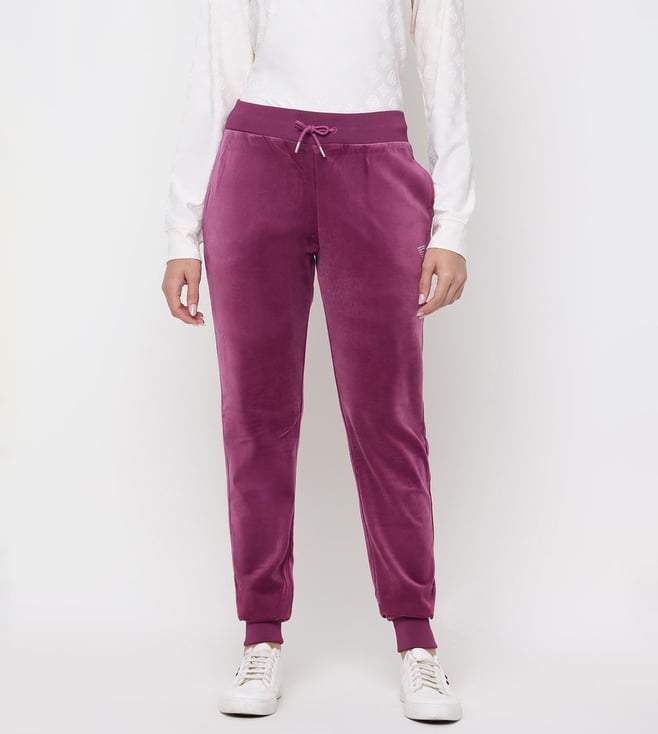 Recy Poly Velvet Mauve Solid High Rise Regular Fit Couture Jogger Pants