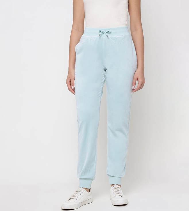 Recy Poly Velvet Seafoam Mist Solid High Rise Regular Fit Couture Jogger Pants