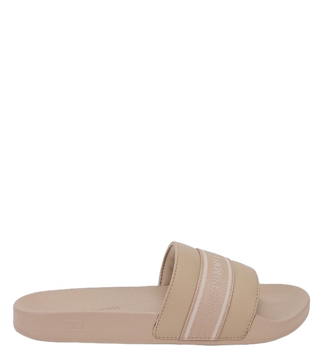 Women Polyster Beige Solid Sliders