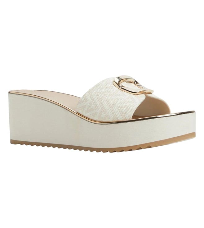 Women's Kezia Off white Logo Ankle Strap Wedges