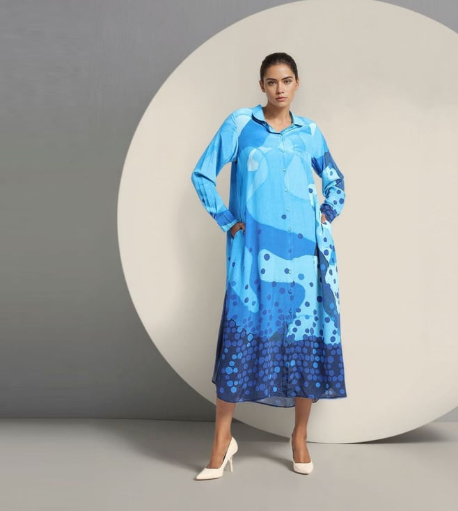 Turquoise Blue Silk Relaxed Fit Floral Embroidered Kaftan with Pants