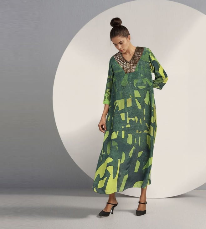Lime Viscose Raw Silk Semi Fitted Fusion Set