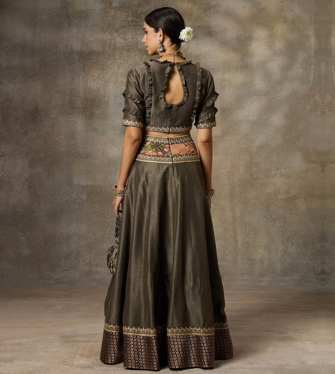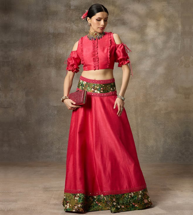 Cranberry Heavy Raw Silk, Silk Velvet & Georgette Tissue Semi Fitted Lehenga Set