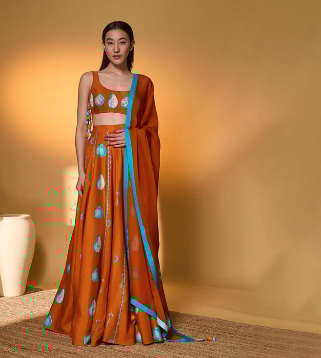 Maroon Botanical Printed Regular Fit Lehenga Set