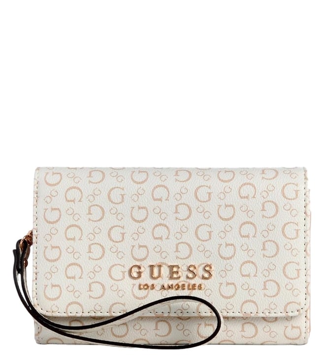 Beige Signature Floral Corner Zip Wristlet