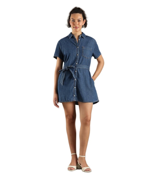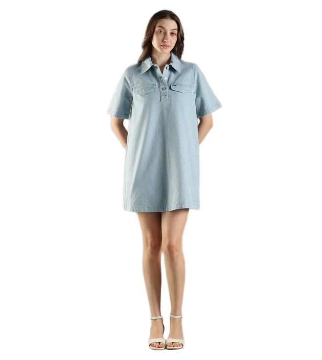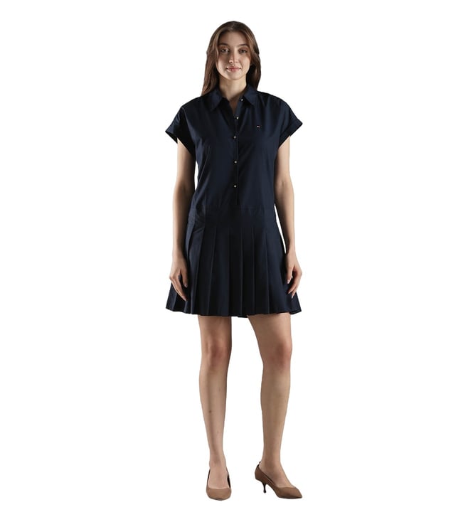 Blue Tommy Spell Out Aop Printed Slim Fit Bodycon Dress