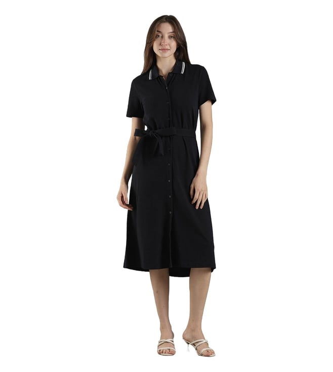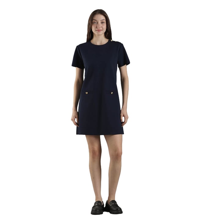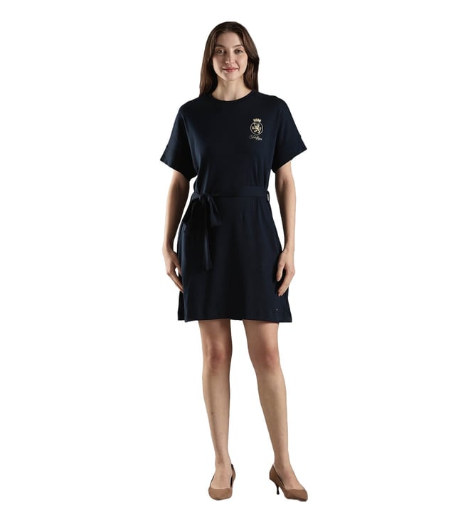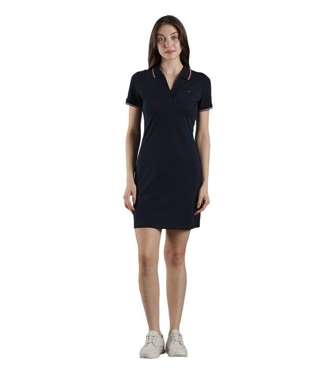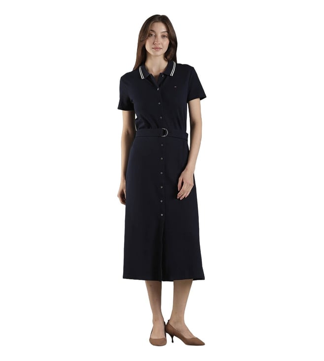 Dark Night Navy Cotton Slim Fit Dress
