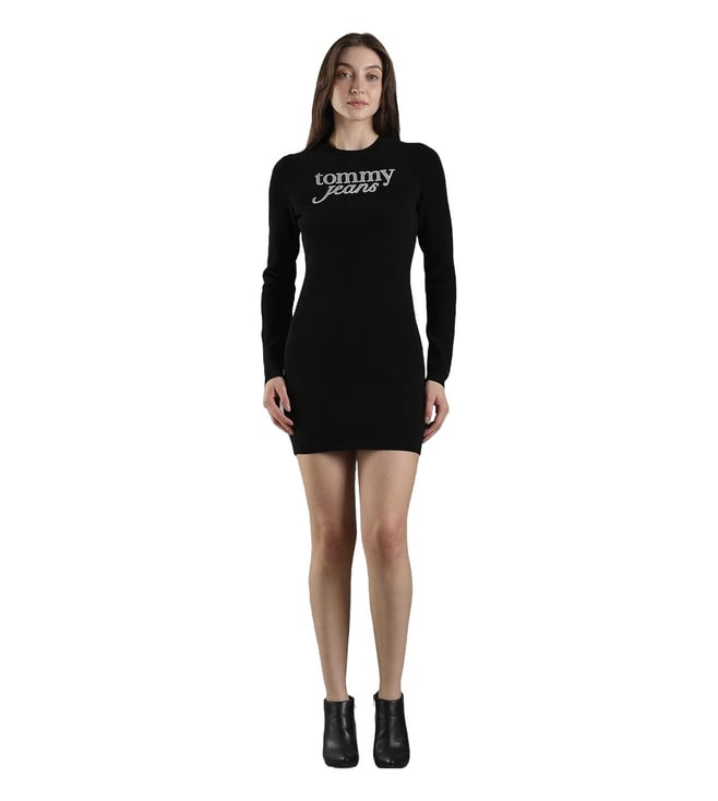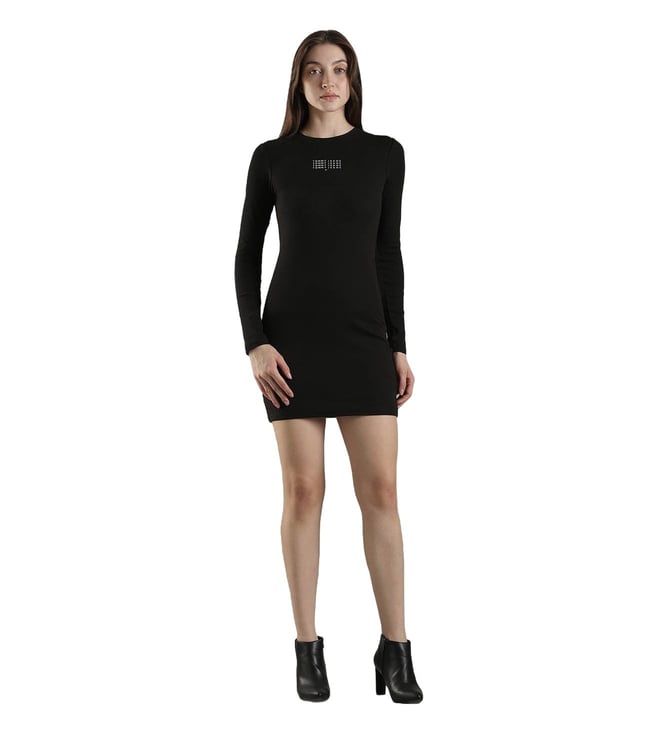Womens Black Embroidered Bodycon Dress