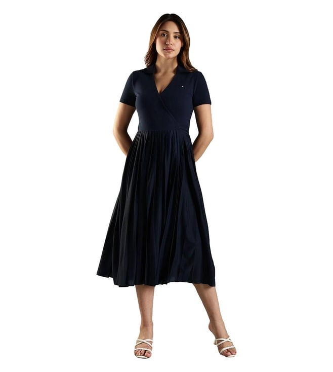 Women's Blue Viscose Tropical Regular Fit Sleeveless Dress