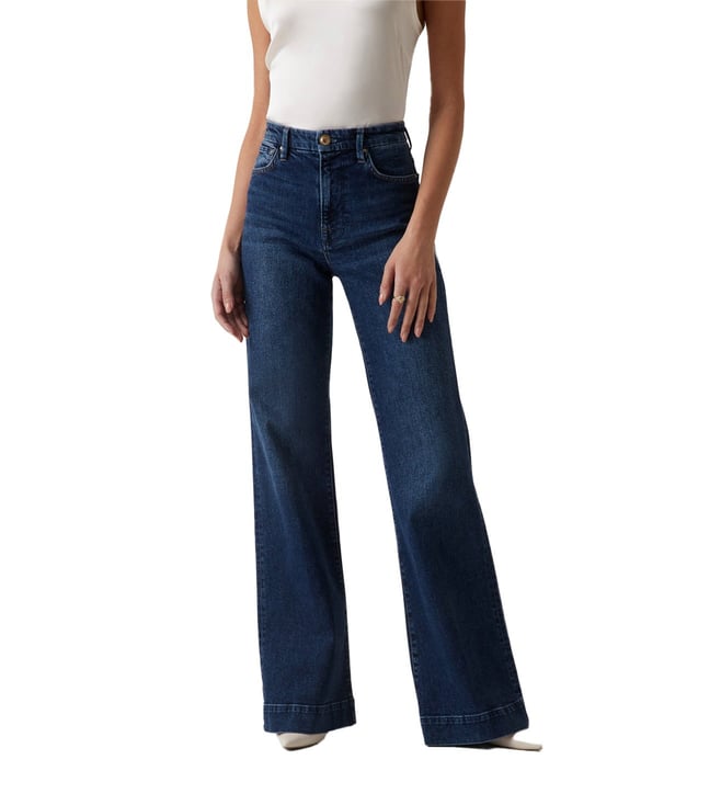Dark Indigo Lin Cotton Staright Fit High Rise Jeans