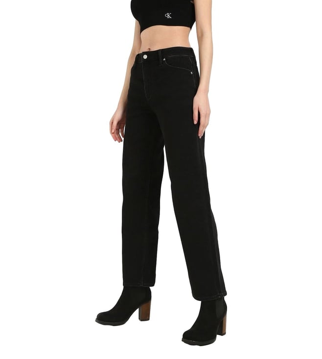 Black Cotton Regular Fit High Rise Jeans