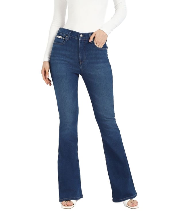 Rinse Blue Solid Flare Fit Jeans