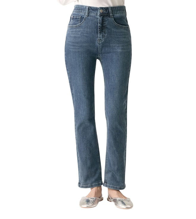 Gold Dust Mid Wash Straight Fit High Rise Jeans