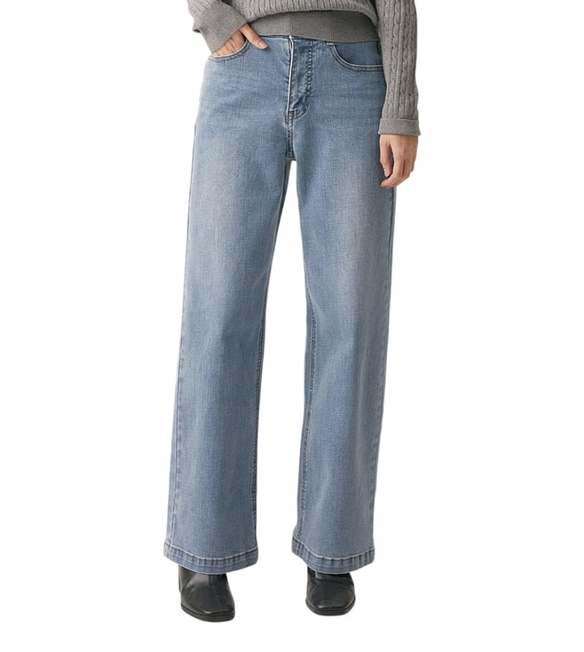 Light Indigo Fit-up Wide Fit Basic Mid Rise Denim Jeans