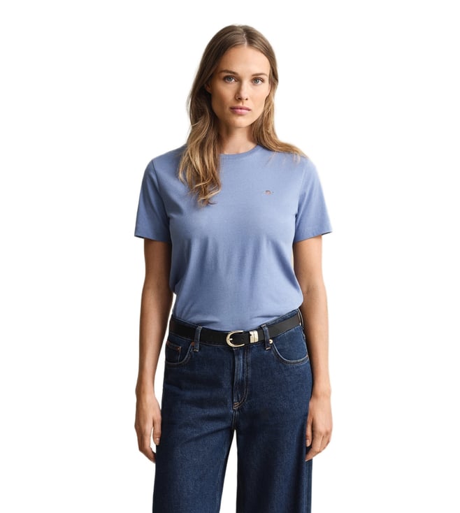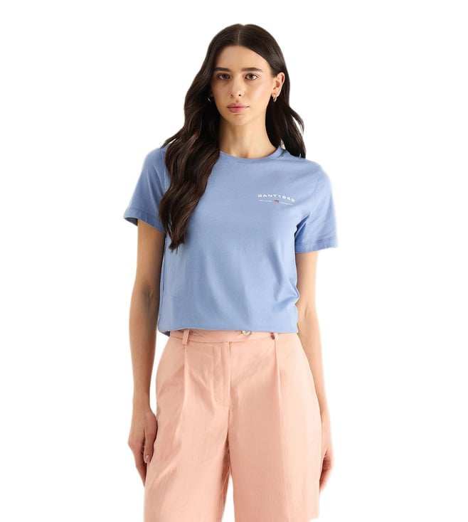 Women Blue Regular Fit Shield T-Shirt