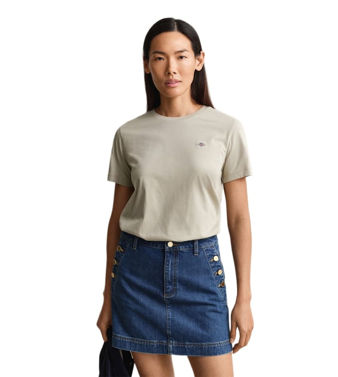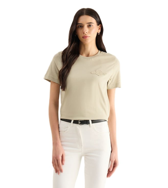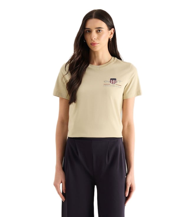 Women Beige Regular Fit Shield T-Shirt