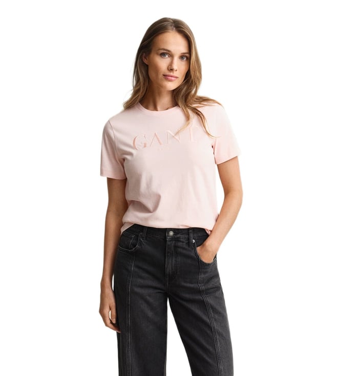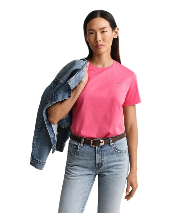 Women Pink Regular Fit Shield T-Shirt