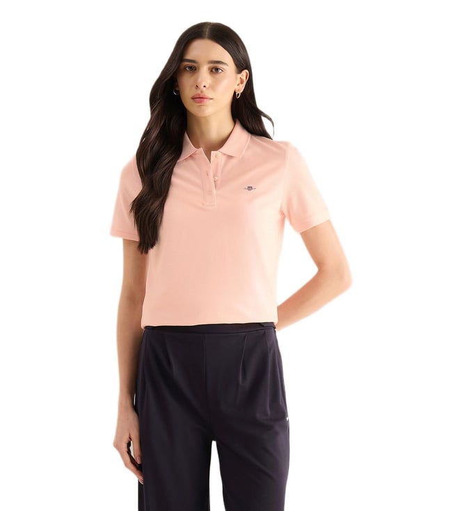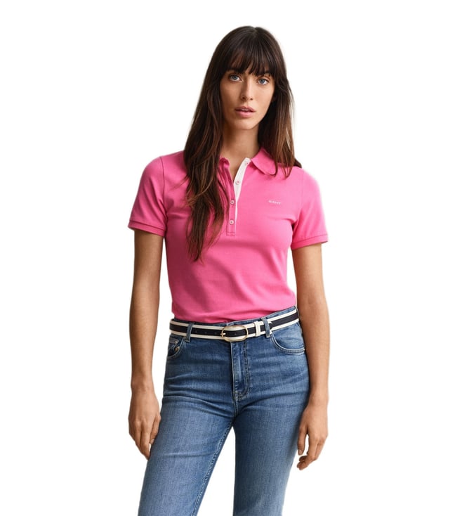 Women Pink Slim Fit Pique Polo T-Shirt