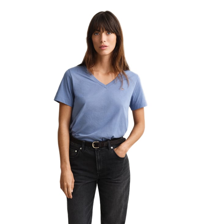 Women Blue Regular Fit V-Neck T-Shirt
