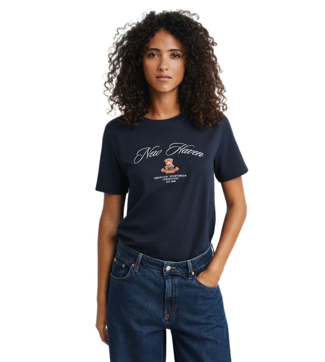 Women Navy Blue Regular Fit Shield T-Shirt